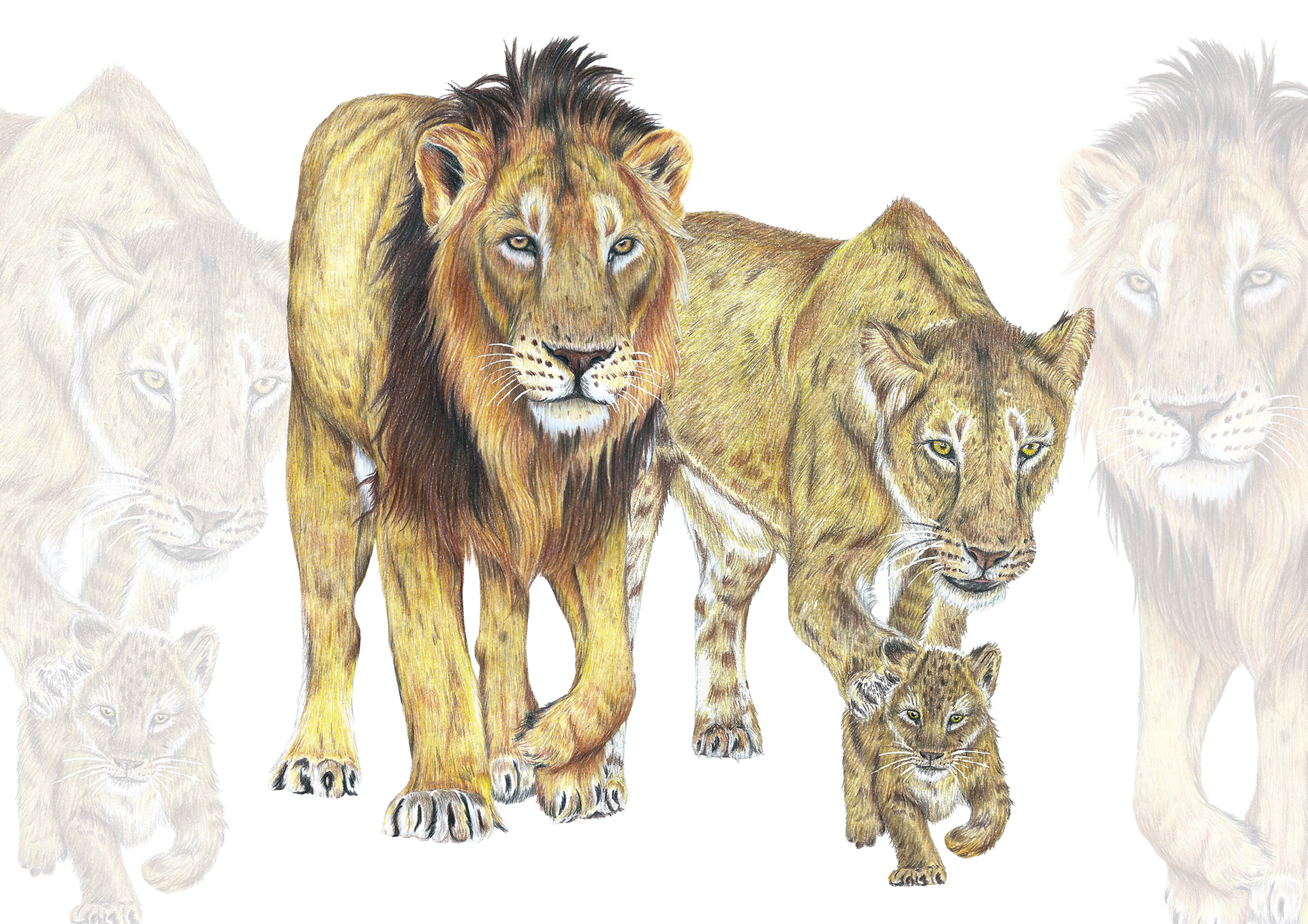 Illustrations in mixed media, displaying authentic hand drawn artwork on paper and in digital format.